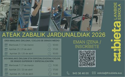 Ikastetxearen instalazioetarako bisita gidatua Heziketa-Proiektuaren azalpena +info